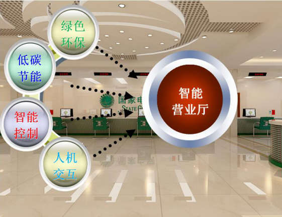 智能营业厅是绿色、智能、温馨的一站式新概念智能电网成就展示平台,是国家电网公司95598光明服务工程一面亮丽的旗帜。该解决方案按照“以客户为中心”的设计理念,采用静心的装修设计,改进功能分区,借助信息通信、计算机网络、智能控制等技术,构建实体、自助、网上和手机四位一体的多功能营业厅,实现服务智能化、互动化、多样化感观式服务体验,为客户提供灵活多样的信息交互、业务受理、缴费灵活多样的24小时服务。同时,该解决方案实现对营业厅可视化在线管理。