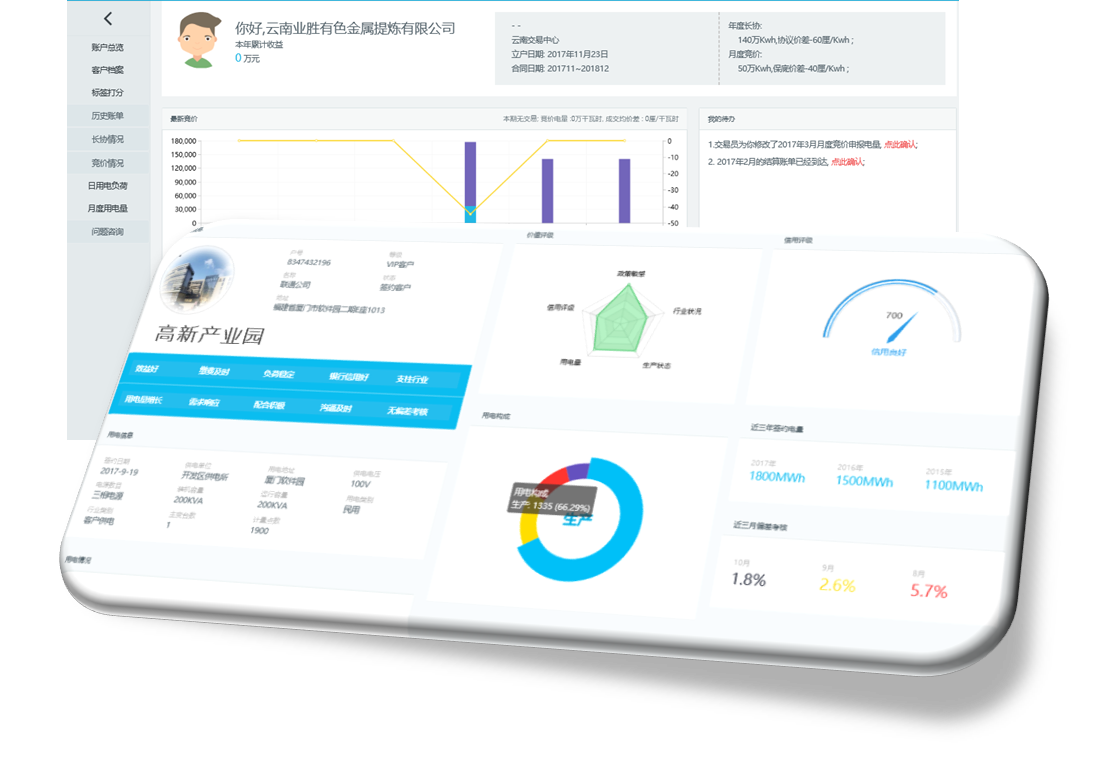 金年会app下载官网购售电一体化平台基于阿里云大数据技术,采用“大平台、微应用”的系统架构,以满足 “中长期+现货”的电力市场为目标,实现购售电交易、客户管理、合同设计、竞价模拟、负荷预测、偏差控制、电费结算等核心功能。系统可适应各省(市)电力市场交易要求,并可与电力交易中心系统和企业内部应用的数据整合和业务交互,满足售电公司企业组建、企业公示和企业运营管理的需要。