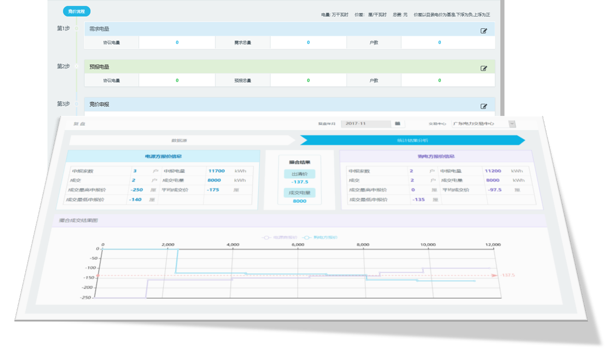 (2) 提供需求电量、预报电量、竞价申报、竞价成交等交易过程管理;