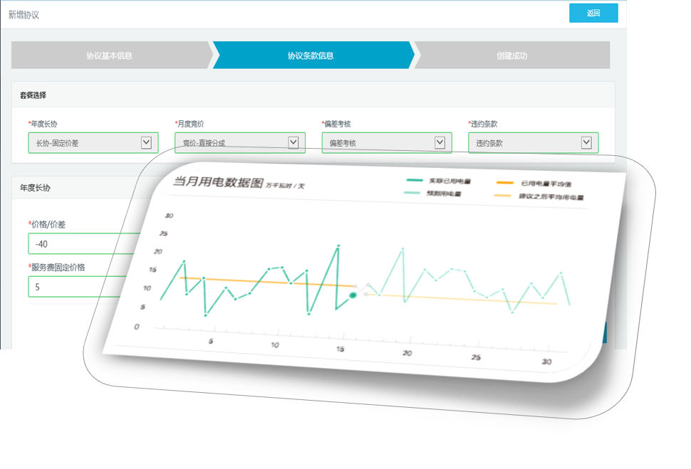 提供售电合约模板制定、合同签订、过程跟踪、结果评价等售电全过程管理和用户用电负荷预测、偏差考核预警、电量分配调整等辅助支撑。