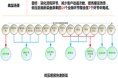 以供电所实际业务开展为导向,对各专业开展的业务流程采用缩减流程环节、合并相关审批环节等方法,缩减流程,提高人员工作效率、减少客户跑供电所次数。