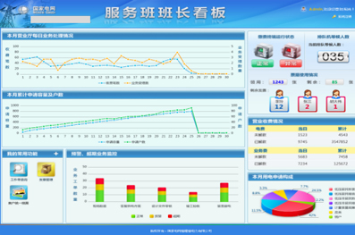 为管理人员提供灵活定制化的管理看板,强化农村乡镇供电所专业化管理,按工作岗位集成工作事项,整合常用功能及辅助功能,提供短信通知、工单预警、督办、工作备忘等手段,提高专业工作效率。包含所长看板、客户服务专责看板、营销班看板、服务班看板、标准化供电所建设情况看板、营业工作台、计量工作台、抄表工作台。