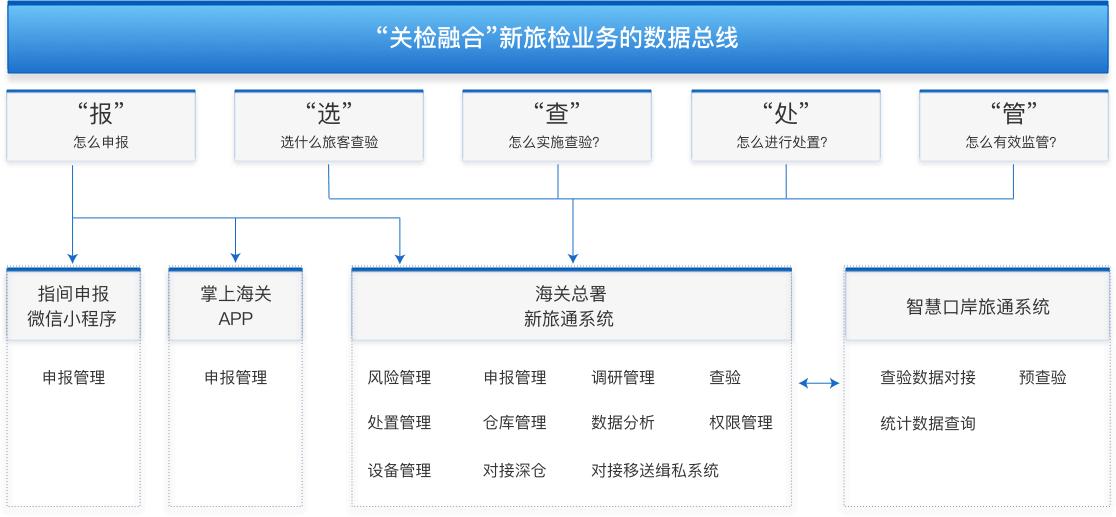 中国海关总署2018旅客通关管理平台已覆盖海关放检的八大核心业务模块(行李申报、风险管理、物品查验、后续处置、检验检疫等),实现关检深度融合的全作业流程管控,并已完与“移送缉私”、“税费查询”等系统对接,覆盖全国300+口岸。